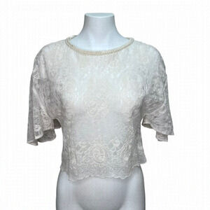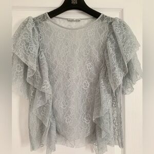 Zara Blue Puff Sleeve Smocked Crop Blouse