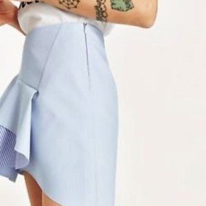 Zara Blue Striped A Line Frilled Mini SKIRT