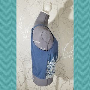 Zara Blue White Floral Embroidered Scalloped Hem Cropped Tank