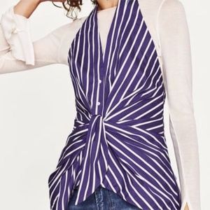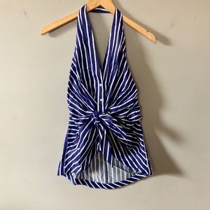 Zara Blue & White Striped Tie Front Halter Top NWT
