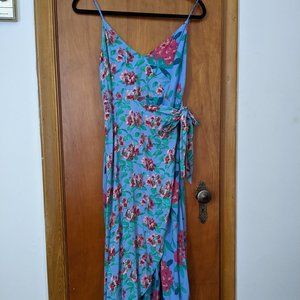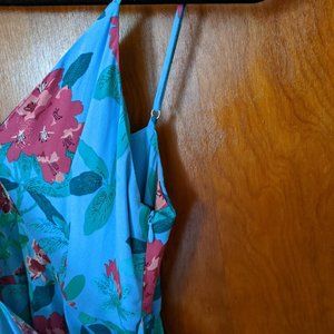 Zara Floral Print Midi Dress with Asymmetric Hem, V-neckline, thin adjustable straps, bow detail on the side, asymmetric hem and invisible side zipper closure. Worn once. Perfect for summer and fall.