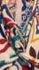 Stylish maxi dress with bold patterns. Features blue and red accents. Perfect for any occasion.