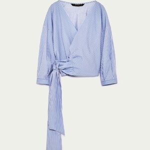 Zara Blue and White Wrap Around Top