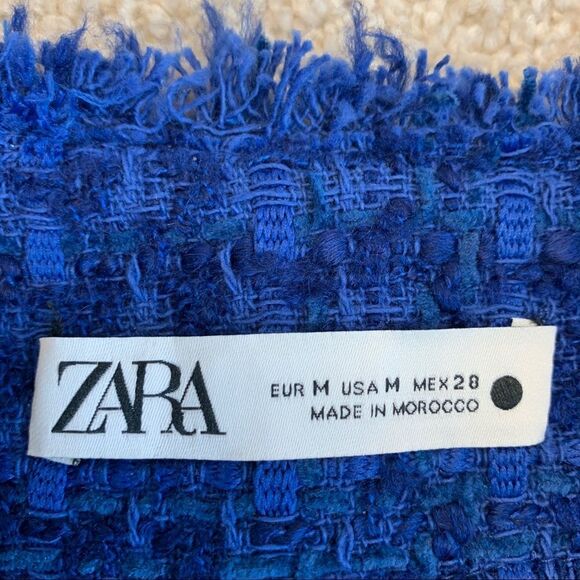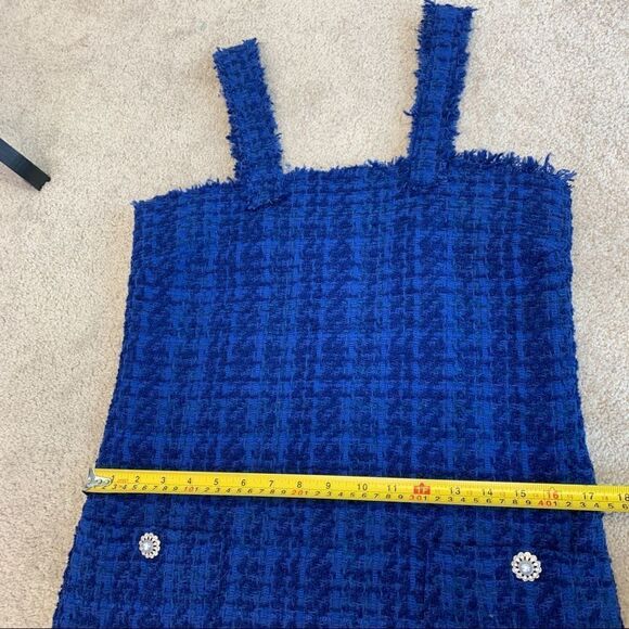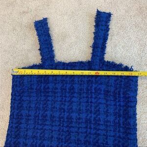 Zara Blue textured pinafore straight neckline wide strap mini dress Sz M