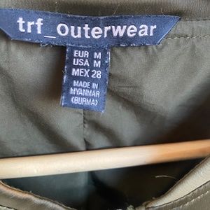 Cute little bomber from Zara in a rich olive colour. It has ruffles across the back and down both arms. Two front pockets and a silver zipper.