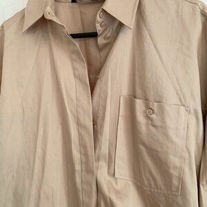 Zara Boxy Button-Up in size S, great condition, only worn a couple of times. This top can be dressed up for an evening out or dressed down for a casual look in jeans, for example. The colour is a cross between camel, tan, and gold.