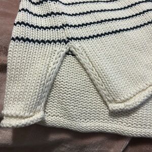 Zara Boxy Roll Neck Oversized Striped Cream and Navy Cotton Knit Sweater
