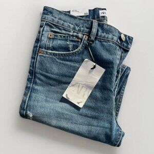 Zara Boyfriend Full Length Jeans Mid Waist Low Rise Slim Fit Straight Leg NEW