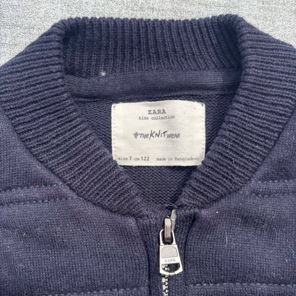 Zara Boys Navy Knit Full-Zip Sweater - Size 7 (122cm) - Like New!