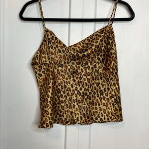 Chic leopard print camisole. Sleek design with thin straps. Perfect for layering or wearing alone.