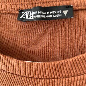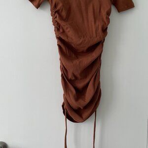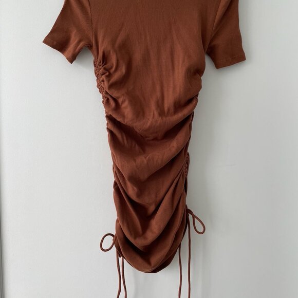 Zara - Brown Short Sleeve Ribbed Dress w/side-tie detail - Size M
