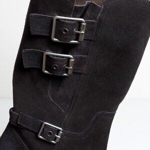 Zara Buckled Biker Boots Split Leather Dark Brown Round Toe EU 40