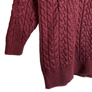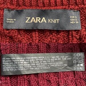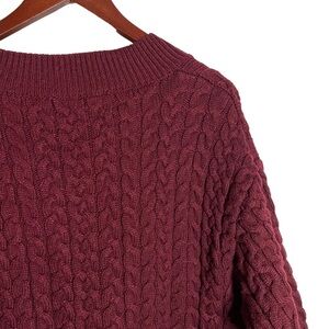 Zara Burgundy Oversized Chunky Cable Knit Sweater V Neck Small