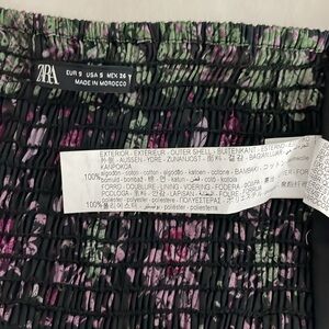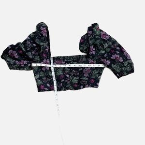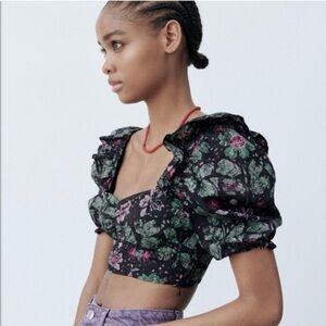 Zara Bustier Top Cropped Floral Smocked Back Puff Sleeve Size Small NWOT
