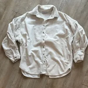 Zara Button Down Shacket Over Sized Shirt XS Collared Ribbed