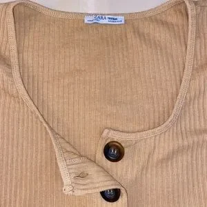 Slightly cropped tee from Zara, in excellent condition! Ribbed texture but doesn’t cling to skin - fitted but loose fit. Size medium but can also fit a small