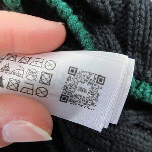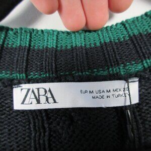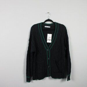 Zara Cable Knit Cardigan Women Blue M Oversize Striped 100% Acrylic Designer 600