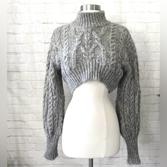 Zara Cable Knit Chunky Cropped Grey Sweater Sweater