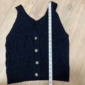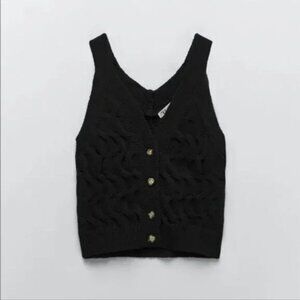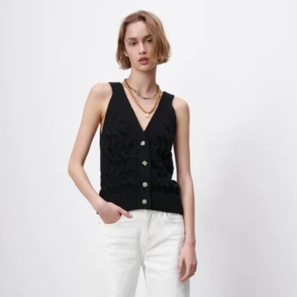 Zara v-neck cable knit vest. V-neck back. Front tortoise shell button closure.