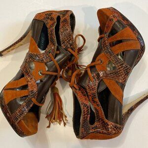 Zara Caged Heels Stiletto Suede Burnt Orange Brown Size 37