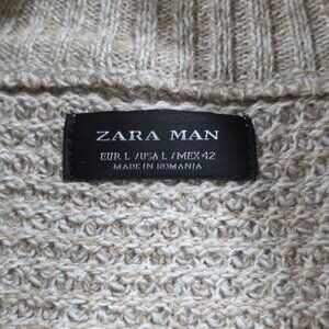 Zara Cardigan Men L Beige Marled Textured LS Shawl Collar Button Preppy Academia
