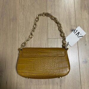 Zara croc textured shoulder bag with chain strap. Gold hardware. Magnetic flap closure.