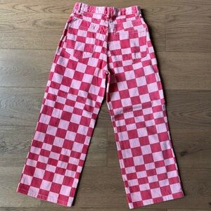 Zara Checkered Pink & Red Cotton Wide Leg Jeans - Like New - Size 4