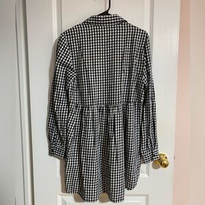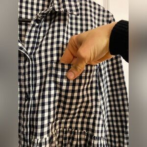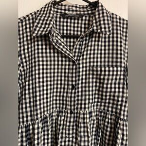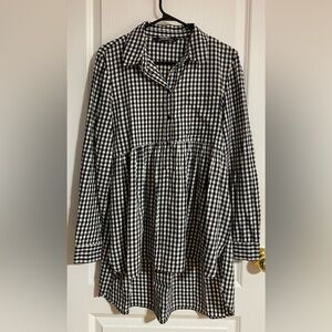 Zara Checkered Tunic High Low Buttoned Oversized Collared Cotton Top Size Small