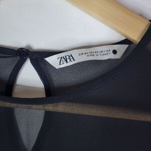 Zara Chic Sheer Loose Fit Black Blouse with Satin Modesty
