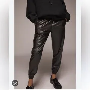 Sleek faux leather joggers with elastic cuffs. Stylish and comfortable for any occasion. Very gently worn.