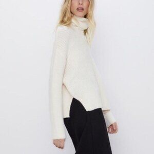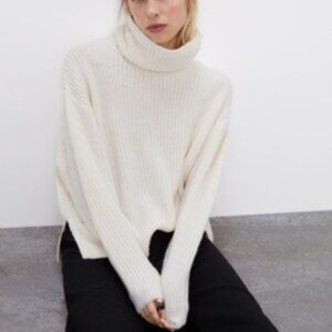Zara Chunky Drop Shoulder Wool Blend Turtleneck Sweater M