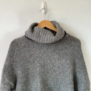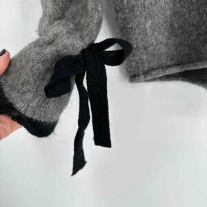 Zara Chunky Knit Turtleneck Oversized Sweater w Bow Tie Sleeve Grey Sz Small