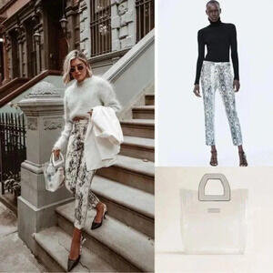 Zara Cigarette Trousers Snakeskin Print Pants Ankle Cropped Grey White Small