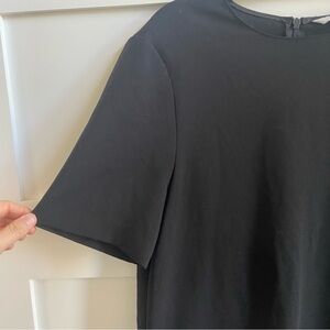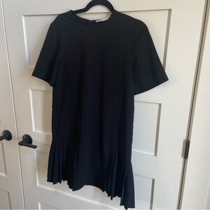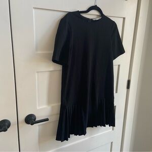 Chic black dress with a sleek design with stylish pleated ruffle hem from Zara. Ideal for versatile styling. Classic shift dress. Fit is slightly oversized.
