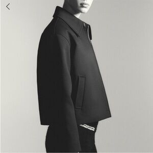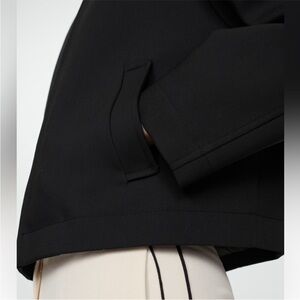 Chic black collar jacket. Modern design with a sleek finish. Ideal for layering.