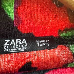 Zara Colourful Floral Balloon Sleeve Long Sleeve Top M.