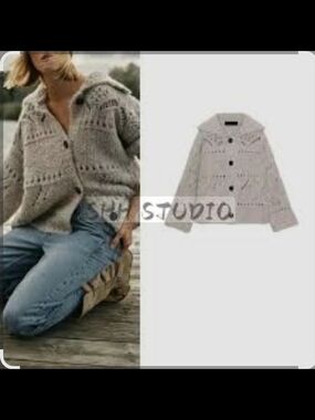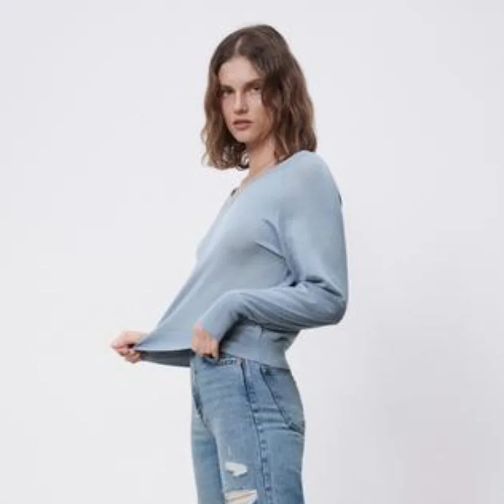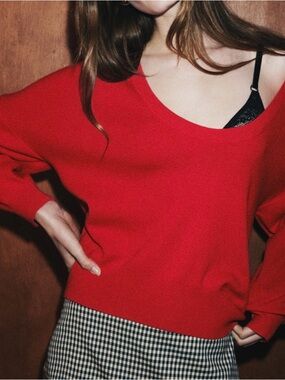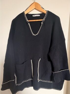NWOT Zara combination knit v-neck lace trim sweater. Long sleeves. Internal button closure to keep bra straps in place.