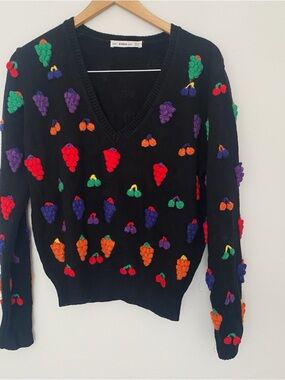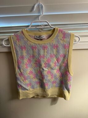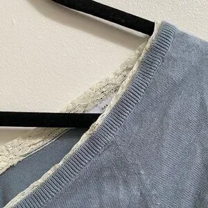 Zara Combination Knit Lace Trim V-Neck Sweater S