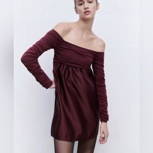 Zara Combination Knit Mini Dress Maroon/Purple NWOT