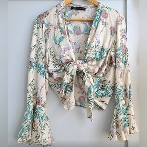 Zara Contrasting Frill Striped Peplum Top NWOT