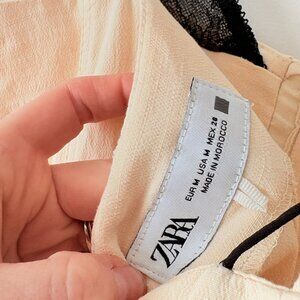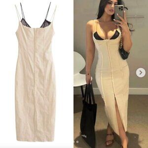 Zara Contrasting Lace Spaghetti Strap Midi Dress Nude Cream Size Medium
