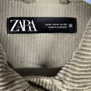 Zara Corduroy Shirt Jacket Womens Medium Olive Green Oversized Shacket Buttons