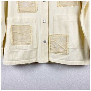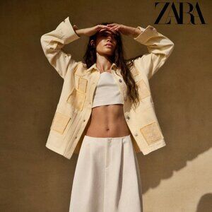 Zara Cotton Overshirt Chore Jacket Embroidered Patches Yellow Size XS