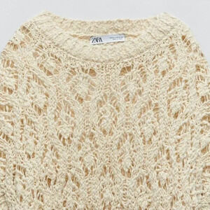 Zara Cotton Pointelle Open Knit Sweater Ecru White NWT Size Small