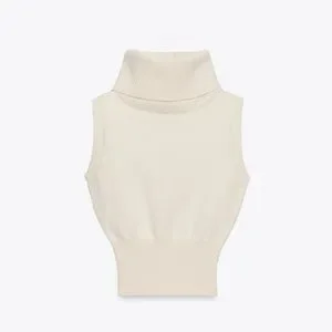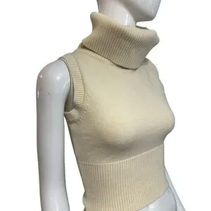 Stylish sleeveless turtleneck top. Soft cream color. Perfect for layering. Excellent newly used condition worn only a few times.