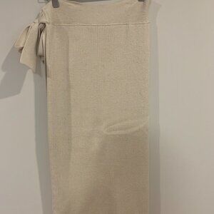 Zara Cream Wrap Front Knit Midi Skirt
