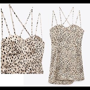 ZARA Cream brown leopard print spaghetti strap mini dress Sz XS NWT