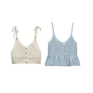 Zara Crochet Camisole Tops - Cream & Light Blue