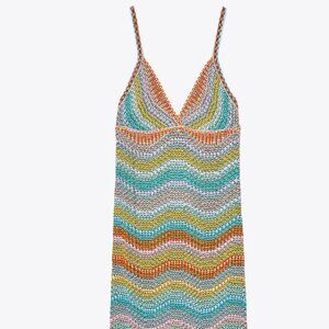 Multicoloured. Long V-neck dress with spaghetti straps. Sold out from Zara.