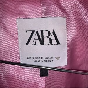 Stylish cropped blazer by Zara. Features a bold pink hue. Ideal for a modern look.